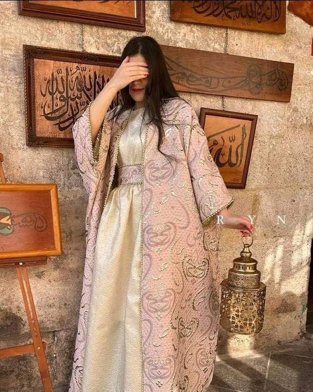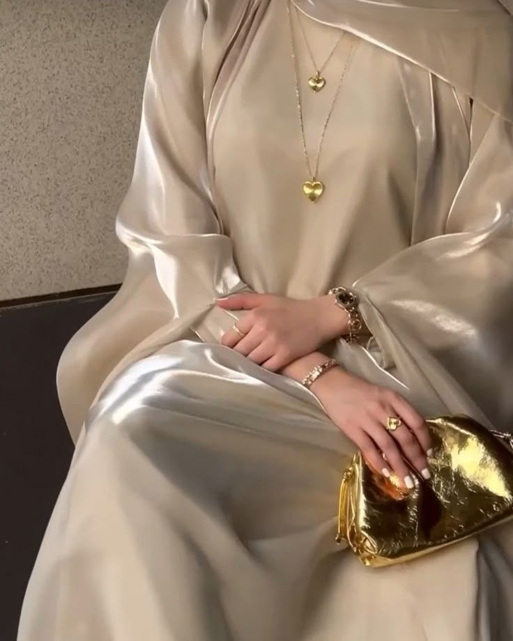 Satin Abaya With Matching Belt Made Of Diamond Tassel