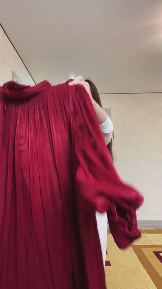 - Design: Flowing silhouette with delicate pleats, voluminous sleeves, and a tiered hem for a dreamy, elegant look.