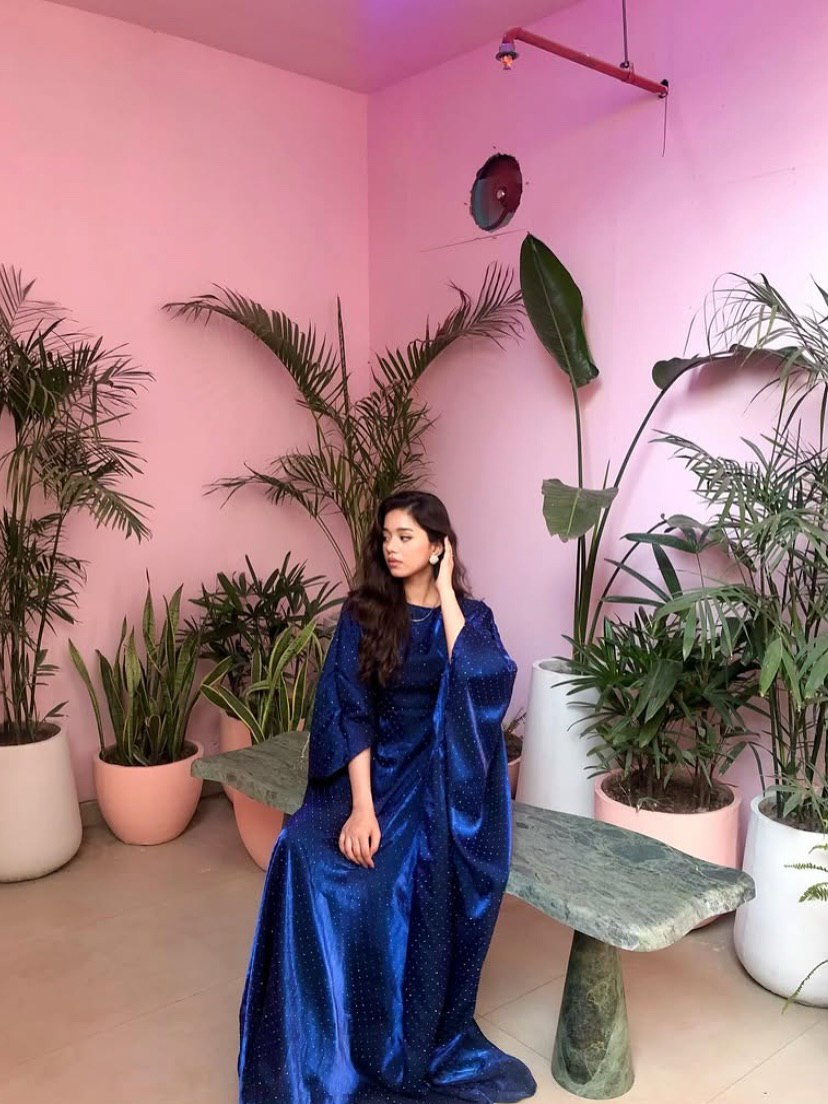 An ode to quiet elegance and timeless grace, the Moonlit Sapphire Kaftan is designed for evenings that call for understated luxury. Draped in a soft sapphire-lilac hue with a delicate shimmer, this kaftan reflects moonlight with every movement, creating an effortlessly regal silhouette.